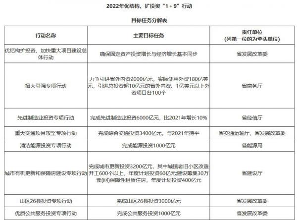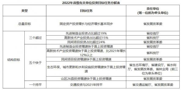 1.擴大有效投資。確保2022年全省固定資產(chǎn)投資增長與經(jīng)濟增長基本同步。